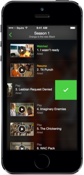 Manage your library and easily let Squire know which episodes you have seen by swiping right on the episode row.